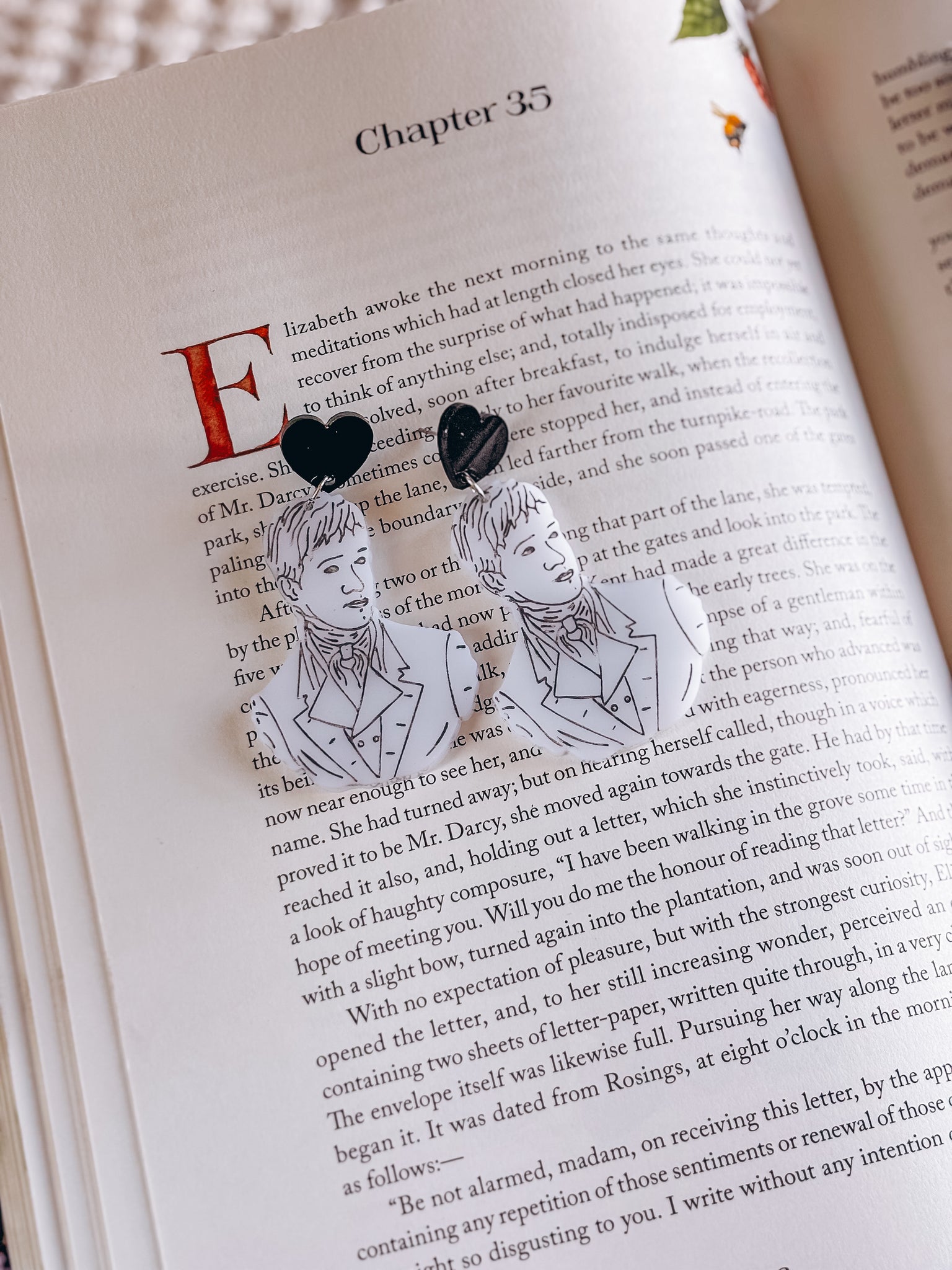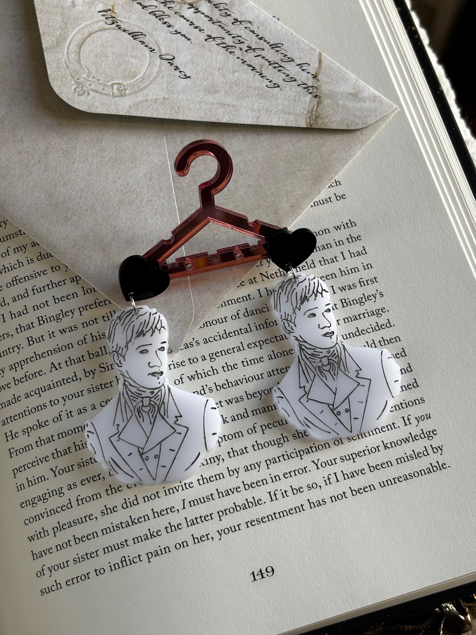 These charming earrings are perfect for styling with empire waist dresses, cozy reading outfits, or anytime you want to channel your inner Elizabeth Bennet. They're a celebration of timeless romance, witty banter, and the enduring magic of Austen's most iconic love story.