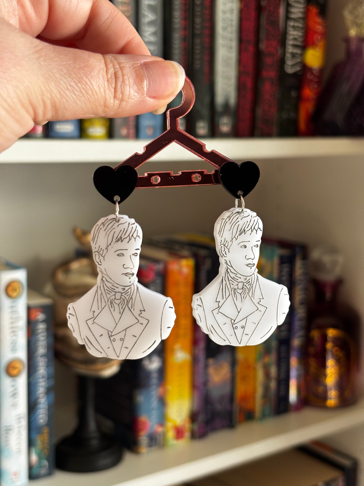 These elegant Mr. Darcy bust earrings are a tribute to Jane Austen's most beloved romantic hero from Pride and Prejudice. Featuring a classical sculptural bust design, these earrings capture the dignified, brooding charm of the gentleman from Pemberley. Perfect for Austen enthusiasts, period drama lovers, and anyone who believes in the power of a well-timed love confession and a good slow-burn romance.