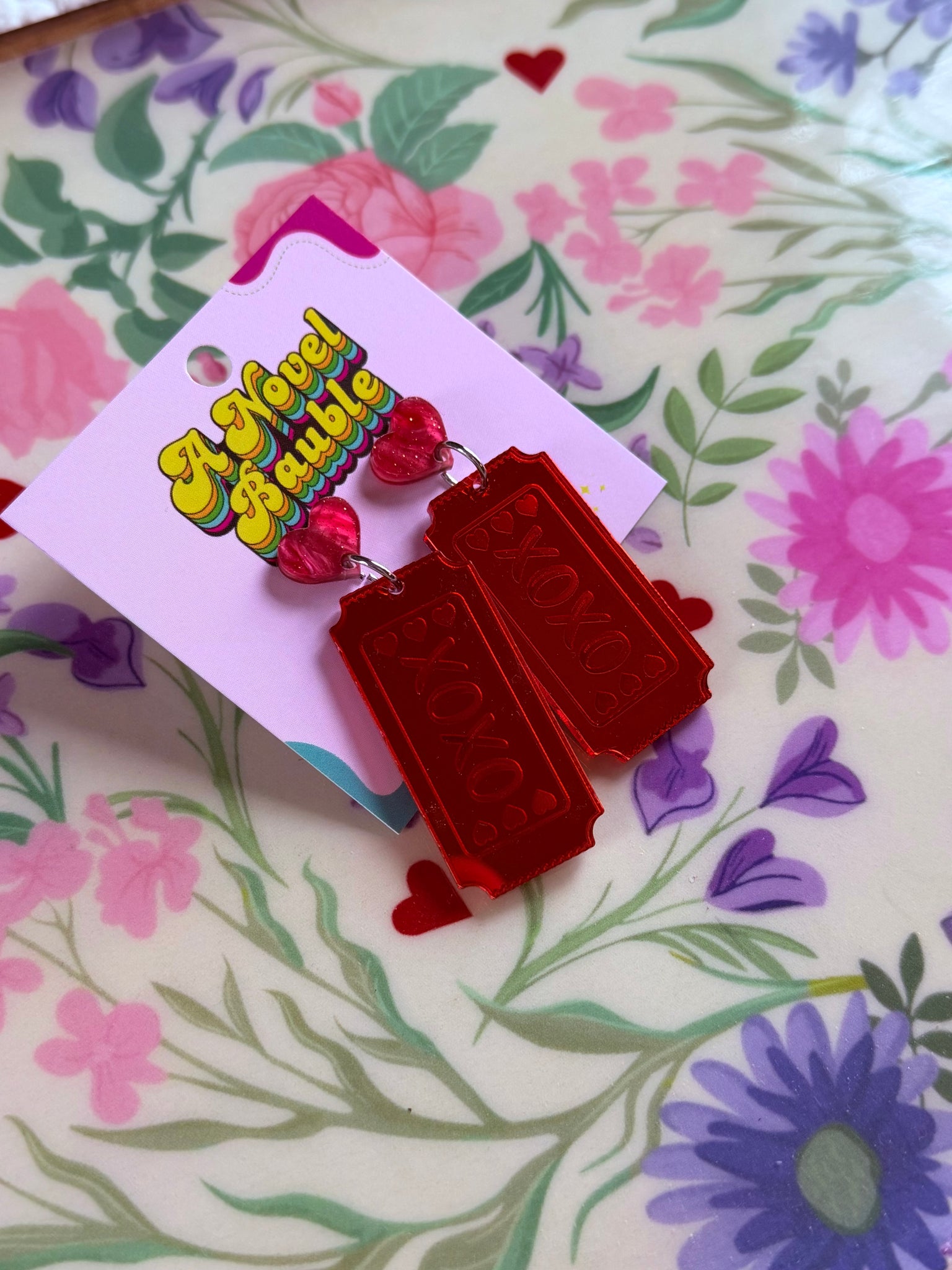 These playful kissing booth ticket earrings are made for romance readers, Valentine's Day enthusiasts, and anyone who believes in the magic of a carnival kiss. Featuring adorable kissing booth tickets paired with XOXO love notes, they're the perfect mix of nostalgic charm and flirty fun.