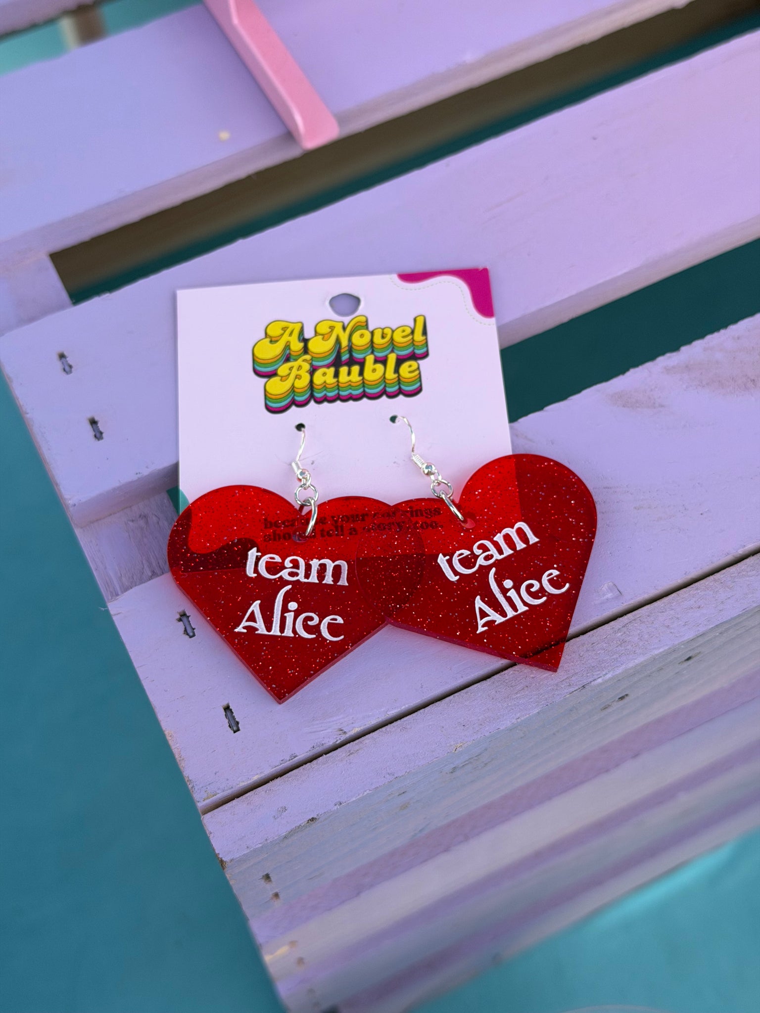 These sparkly red heart earrings (1.6" in length) are made from translucent acrylic that catches the light beautifully with every move. Playful, romantic, and full of personality, they’re perfect for fans who fell in love with the bright, bold, and stylish immortal.